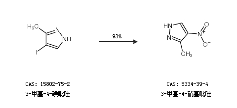 2.通过3-甲基-4-碘吡唑合成3-甲基-4-硝基吡唑,收率约93%;