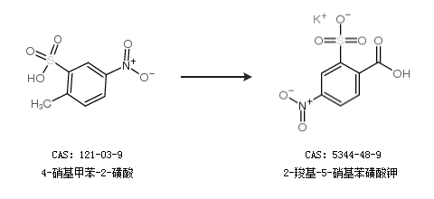 1.通过4-硝基甲苯-2-磺酸合成2-羧基-5-硝基苯磺酸钾