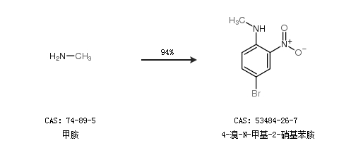 1.通过甲胺合成4-溴-N-甲基-2-硝基苯胺,收率约94%;