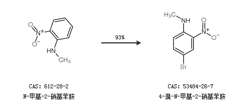 2.通过N-甲基-2-硝基苯胺合成4-溴-N-甲基-2-硝基苯胺,收率约93%;