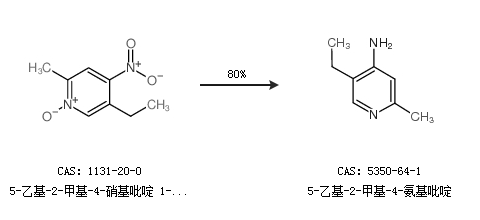 1.通过5-乙基-2-甲基-4-硝基吡啶 1-氧化物合成5-乙基-2-甲基-4-氨基吡啶,收率约80%;