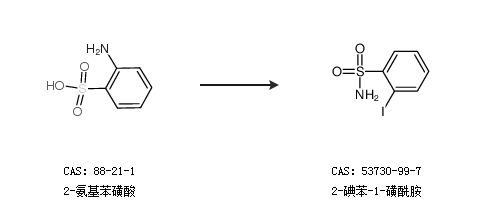 1.通过2-碘苯磺酸合成2-碘苯-1-磺酰胺