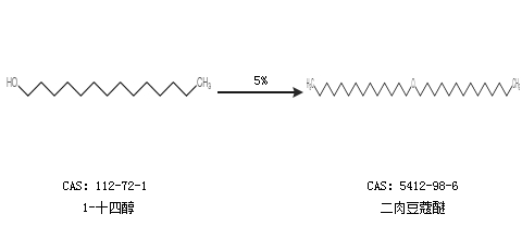 1.通过1-十四醇合成二肉豆蔻醚,收率约93%;
