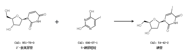 1.通过2''-脱氧尿苷和5-碘尿嘧啶合成碘苷