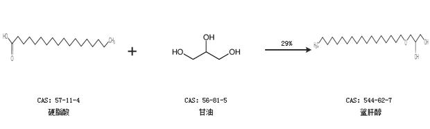 1.通过硬脂酸和甘油合成鲨肝醇,收率约29%;