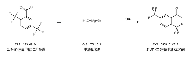 1.通过2,5-双(三氟甲基)苯甲酰氯和甲基溴化镁合成2'',5''-二(三氟甲基)苯乙酮,收率约56%;