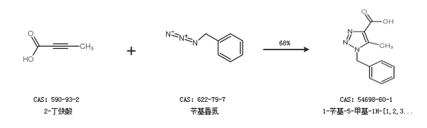 1.通过2-丁炔酸和苄基叠氮合成1-苄基-5-甲基-1H-[1,2,3]三唑-4-甲酸,收率约68%;