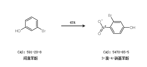 2.通过间溴苯酚合成3-溴-4-硝基苯酚,收率约45%;