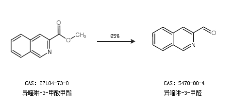 1.通过异喹啉-3-甲酸甲酯合成异喹啉-3-甲醛,收率约65%;