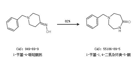1.通过1-苄基-4-哌啶酮肟合成1-苄基-1,4-二氮杂环庚-5-酮,收率约82%;
