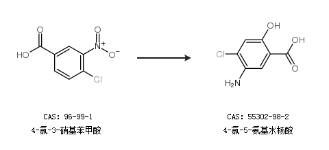 1.通过4-氯-3-硝基苯甲酸合成4-氯-5-氨基水杨酸