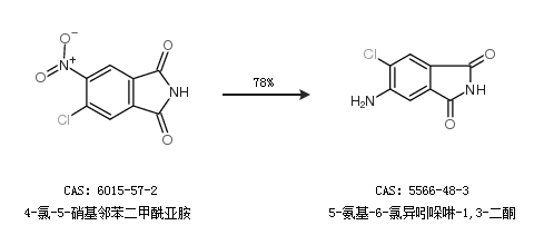1.通过4-氯-5-硝基邻苯二甲酰亚胺合成5-氨基-6-氯异吲哚啉-1,3-二酮,收率约78%;