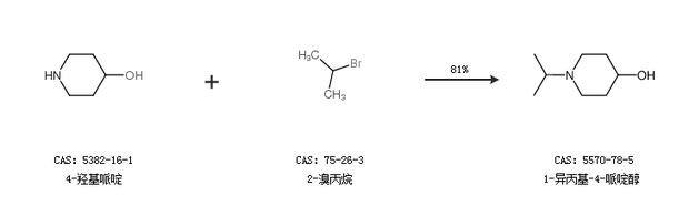2.通过4-羟基哌啶和2-溴丙烷合成1-异丙基-4-哌啶醇,收率约81%;