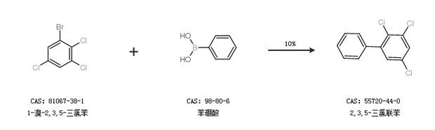 1.通过1-溴-2,3,5-三氯苯和苯硼酸合成2,3,5-三氯联苯,收率约10%;