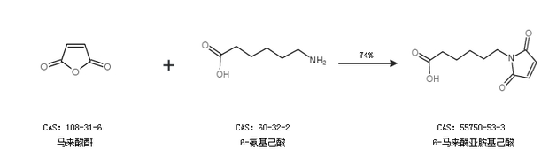 2.通过马来酸酐和6-氨基己酸合成6-马来酰亚胺基己酸,收率约74%;
