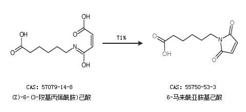 1.通过(Z)-6-(3-羧基丙烯酰胺)己酸合成6-马来酰亚胺基己酸,收率约71%;