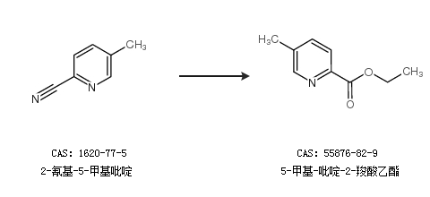 2.通过2-氰基-5-甲基吡啶合成5-甲基-吡啶-2-羧酸乙酯