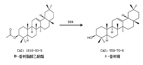 1.通过Β-香树脂醇乙酸酯合成β-香树精,收率约94%;