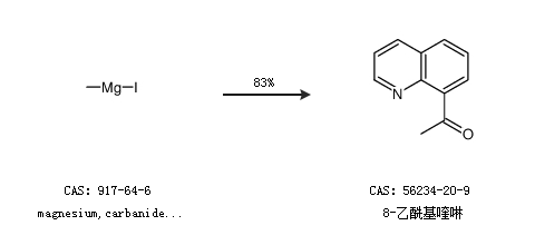 1.通过magnesium,carbanide,iodide合成8-乙酰基喹啉,收率约83%;