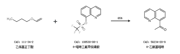 2.通过乙烯基正丁醚和8-喹啉三氟甲烷磺酸合成8-乙酰基喹啉,收率约65%;