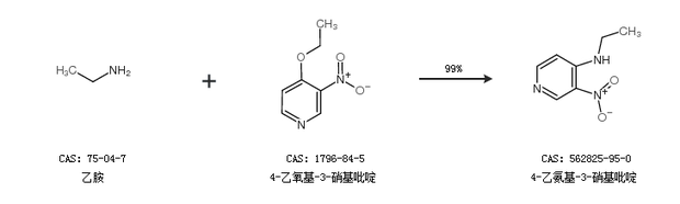 2.通过乙胺和4-乙氧基-3-硝基吡啶合成4-乙氨基-3-硝基吡啶,收率约99%;