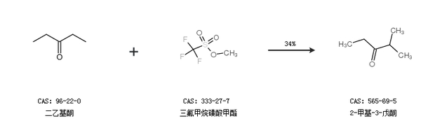 2.通过二乙基酮和三氟甲烷磺酸甲酯合成2-甲基-3-戊酮,收率约34%;