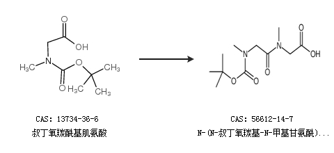 2.通过叔丁氧羰酰基肌氨酸合成N-(N-叔丁氧羰基-N-甲基甘氨酰)-N-甲基甘氨酸