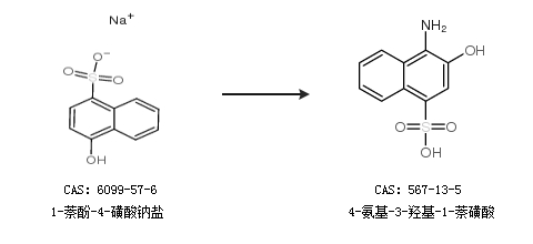 1.通过1-萘酚-4-磺酸钠盐合成4-氨基-3-羟基-1-萘磺酸