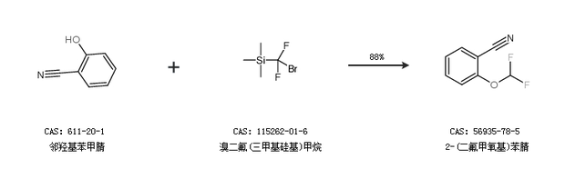 1.通过邻羟基苯甲腈和溴二氟(三甲基硅基)甲烷合成2-(二氟甲氧基)苯腈,收率约88%;
