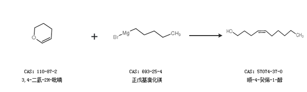 2.通过3,4-二氢-2H-吡喃和正戊基溴化镁合成顺-4-癸烯-1-醇