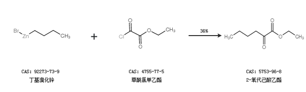 2.通过丁基溴化锌和草酰氯单乙酯合成2-氧代己酸乙酯,收率约36%;