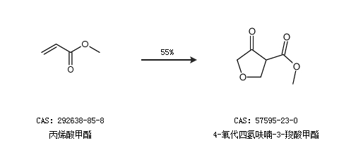 2.通过丙烯酸甲酯合成4-氧代四氢呋喃-3-羧酸甲酯,收率约55%;