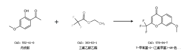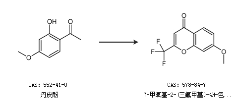 1.通过丹皮酚和三氟乙酸乙酯合成7-甲氧基-2-(三氟甲基)-4H-色烯-4-酮