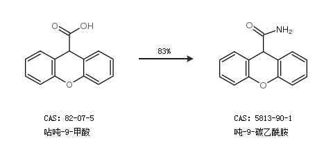 1.通过呫吨-9-甲酸合成吨-9-碳乙酰胺,收率约83%;