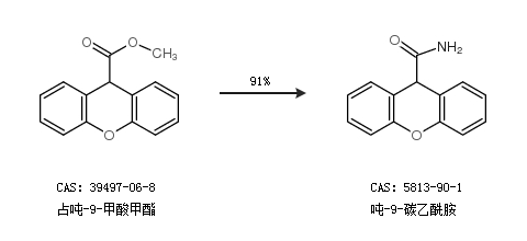 2.通过占吨-9-甲酸甲酯合成吨-9-碳乙酰胺,收率约91%;