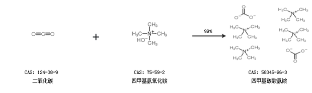 1.通过二氧化碳和四甲基氢氧化铵合成四甲基碳酸氢铵,收率约99%;