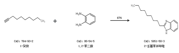 2.通过1-癸炔和1,2-苯二胺合成2-壬基苯并咪唑,收率约67%;