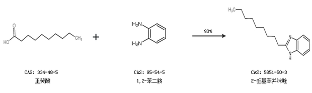 1.通过正癸酸和1,2-苯二胺合成2-壬基苯并咪唑,收率约90%;