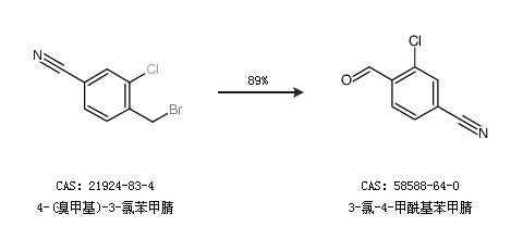 2.通过4-(溴甲基)-3-氯苯甲腈合成3-氯-4-甲酰基苯甲腈,收率约89%;