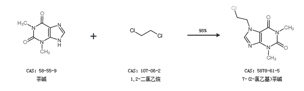 1.通过茶碱和1,2-二氯乙烷合成7-(2-氯乙基)茶碱,收率约98%;