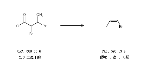1.通过2,3-二溴丁酸合成顺式-1-溴-1-丙烯,收率约48%;