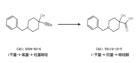 1.通过1苄基-4-氰基-4-羟基哌啶合成1-苄基-4-羧基-4-哌啶醇