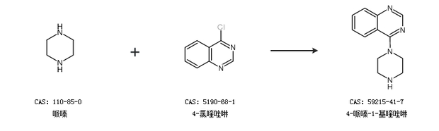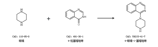 1.通过哌嗪和4-羟基喹唑啉合成4-哌嗪-1-基喹唑啉