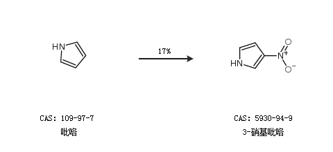 1.通过吡咯合成3-硝基吡咯,收率约17%;