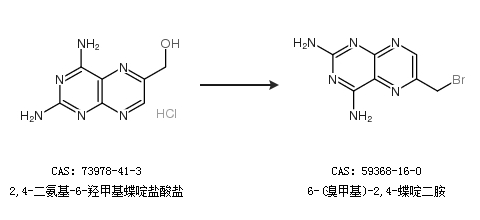 2.通过2,4-二氨基-6-羟甲基蝶啶盐酸盐合成6-(溴甲基)-2,4-蝶啶二胺