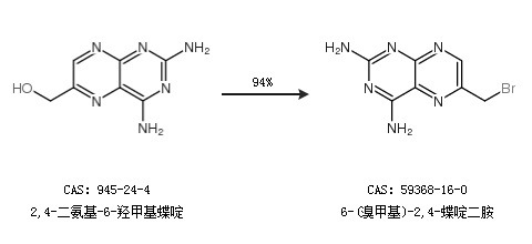 1.通过2,4-二氨基-6-羟甲基蝶啶合成6-(溴甲基)-2,4-蝶啶二胺,收率约94%;