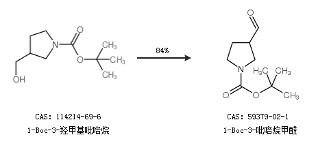 1.通过1-Boc-3-羟甲基吡咯烷合成1-Boc-3-吡咯烷甲醛,收率约84%;