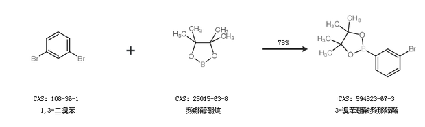 2.通过1,3-二溴苯和频哪醇硼烷合成3-溴苯硼酸频那醇酯,收率约78%;