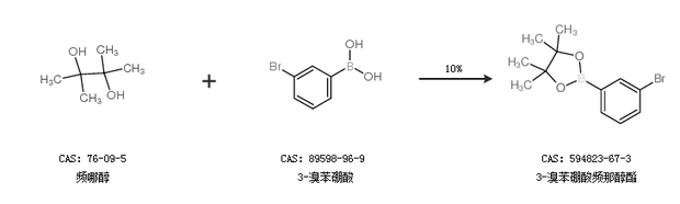 1.通过频哪醇和3-溴苯硼酸合成3-溴苯硼酸频那醇酯,收率约10%;
