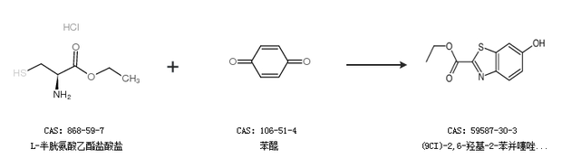 1.通过L-半胱氨酸乙酯盐酸盐和苯醌合成(9CI)-2,6-羟基-2-苯并噻唑羧酸乙酯